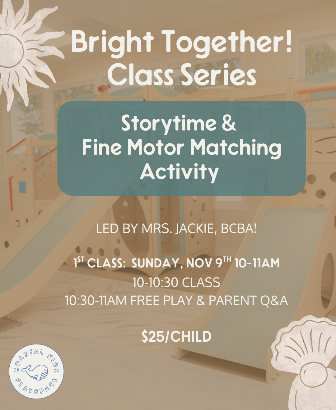 Bright Together! A Sensory-Friendly Class Sunday, November 9, 2025 10:00 AM 11:00 AM Coastal Kids Playspace 2610 North Los Coyotes Diagonal Long Beach, CA, 90815 United States (map) Google Calendar ICS Register Here!